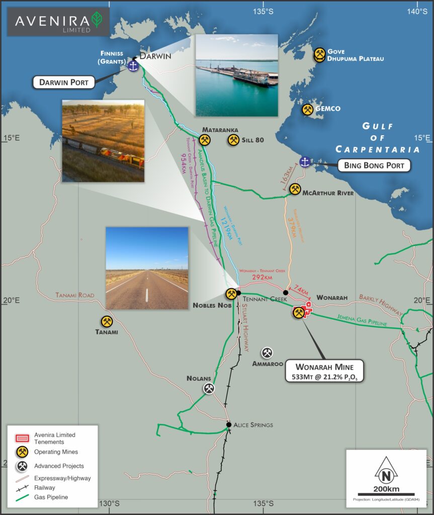 Avenira has an extensive tenement portfolio which extends well beyond the existing Wonarah resource. Some of this portfolio has been drilled at a broad spacing and contains intercepts of >27% P2O5 . This will allow Avenira to support long-term operations associated with the downstream YP, TPA and LFP projects.